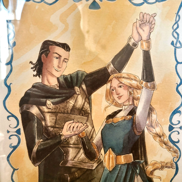 Cette œuvre représente le couple emblématique de la mythologie nordique : Loki, dieu de la ruse et du chaos, et Sigyn, déesse de la fidélité et de la dévotion.